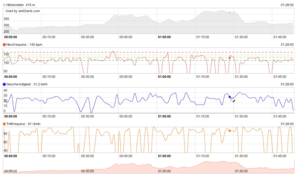 Also war um 15:00 Uhr Schluss, danach gings nach Hause und ab aufs Rad. In den schattigen Bereichen war es doch noch etwas frisch, aber ansonsten war es recht angenehm zu fahren. Knapp 50km sind so zusammengekommen – nicht schlecht für ’nen Ruhetag.